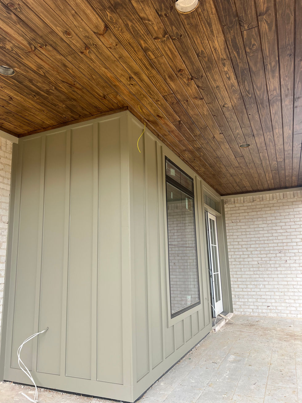 Showcasing the expertise in exterior house painting, including newly painted exteriors, finished painting and stonework, and exterior wall and wooden ceiling painting. Experience in painting contractor's van outside and freshly painted residential house with a well-maintained lawn.